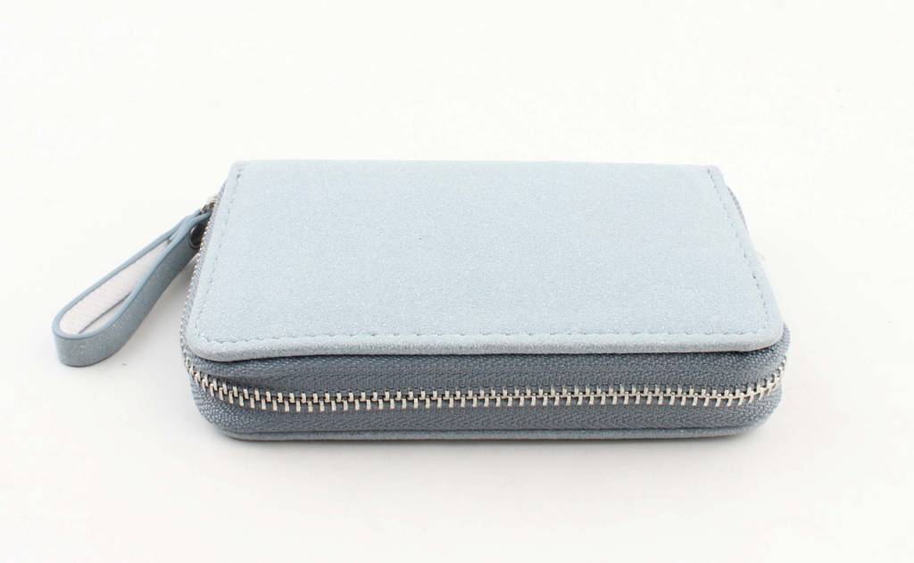 Mooie lichtblauwe portemonnee met kleine glitters (op de foto niet goed zichtbaar), de portemonnee heeft een handzaam formaat. Wij waren gelijk weg van deze leukerd!